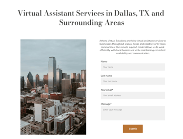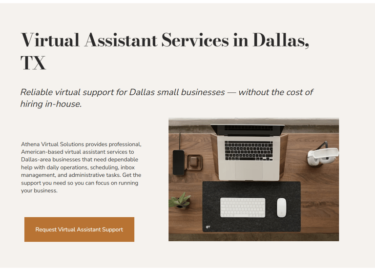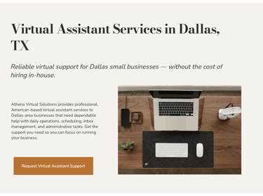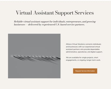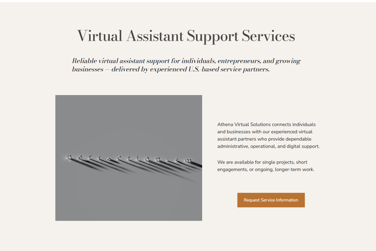 Our client, Athena Virtual Solutions, wanted a very simple, fast site that was no-nonsense, affordable, and conveyed clearly what her services are. She wanted a slightly feminine site, because why not? She likes pink and she likes a dainty logo. She got what she wanted. We used a Hostinger plan and had the site up in two days. She got her first clients within a week.
