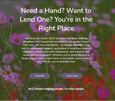 This website was built for New Life Center, a community outreach in Honea Path, SC. Their mission is simple: Help people. No judgment. No paperwork. Just food, clothing, household goods, and a friendly welcome for anyone who needs it.